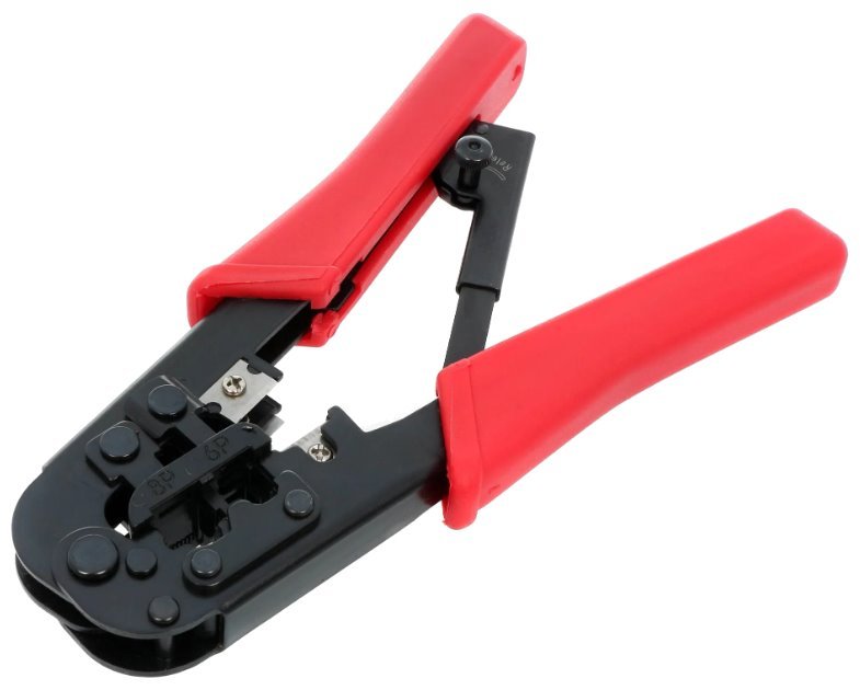 Krimpovací kleště pro upevňování konektorů RJ-11 a RJ-12 na telefonní kabely a pro RJ-45 na síťové kabely.