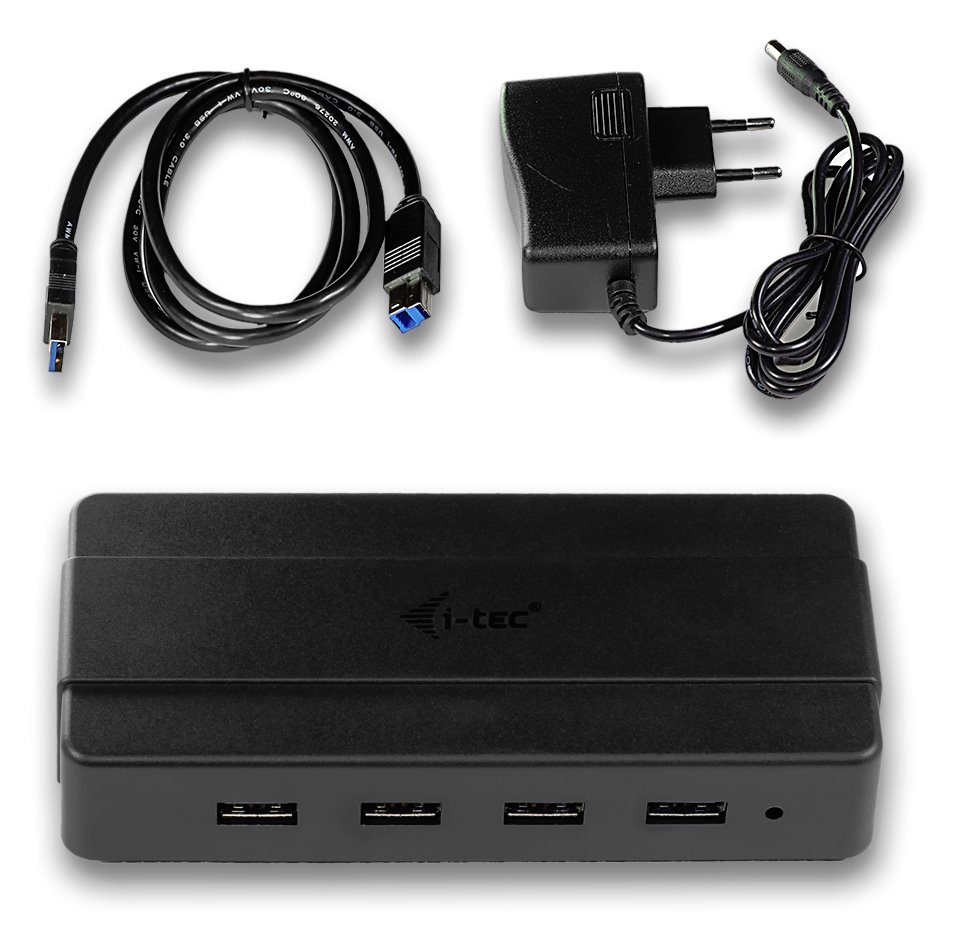 USB hub I-TEC nabízí rozšíření o čtyři USB 3.0 portů, z nichž jeden podporuje nabíjení s výstupem 2 A. Hub má vestavěnou přepěťovou ochranu pro případ zkratu na periferních zařízeních. Zařízení je kompatibilní s běžně používanými operačními systémy Windows, Mac OS X a Linux. Hub je dodáván s napájecím adaptérem a USB kabelem.