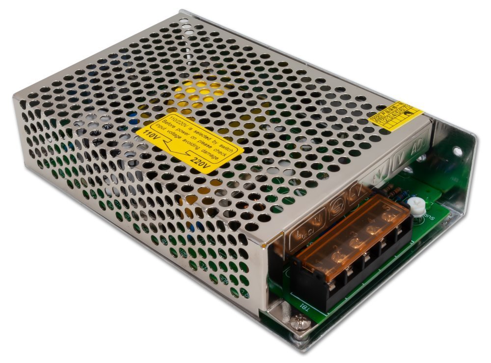 Stabilizovaný napájecí zdroj s nastavitelnou hodnotou výstupu 11–14 V DC (max. proud 5 A) a výkonem 60 W. Určený pro vestavbu či přímou montáž na zeď. LED signalizace funkčnosti portů.