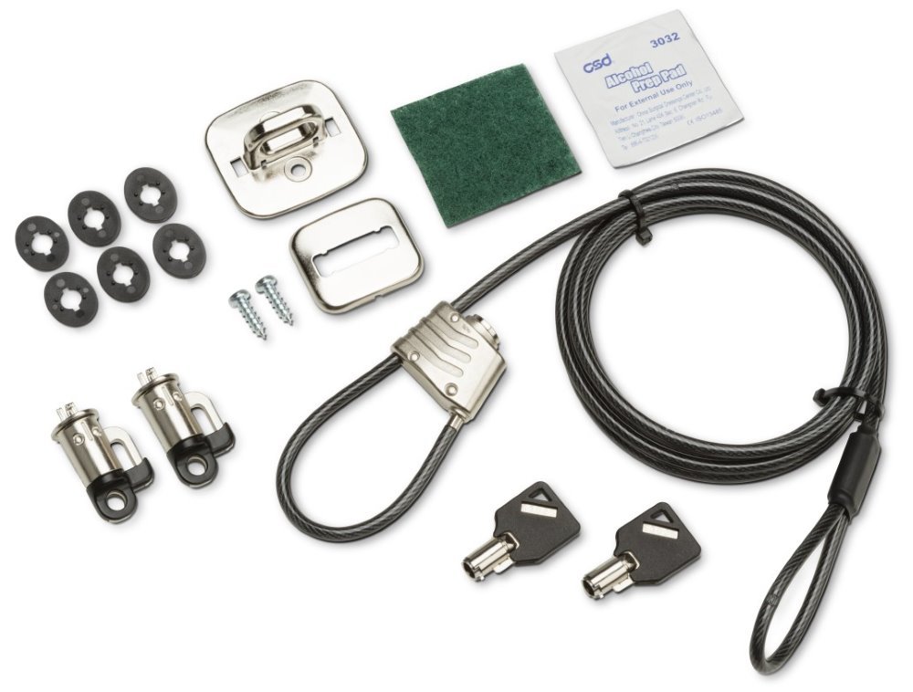 Sada bezpečnostního zámku vám pomůže ochránit skříň počítače i monitor před neoprávněným přístupem či odcizením jak na pracovišti, tak na veřejných místech. Jednoduše protáhněte kabel otvorem pro zámek v počítači i monitorem, připevněte jej ke stolu nebo jinému ukotvenému předmětu a zamkněte jej svým klíčem.