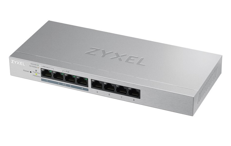 Spravovatelný switch v desktopovém provedení určený do kancelářského provozu. Nabízí osm GbE RJ-45 portů, z toho čtyři s podporou PoE do max. 60 W. Na jeden port je možné připojit zařízení se spotřebou až 30 W. Kromě podpory QoS zvládá sítě VLAN, IGMP snooping v1/v2 a v3.