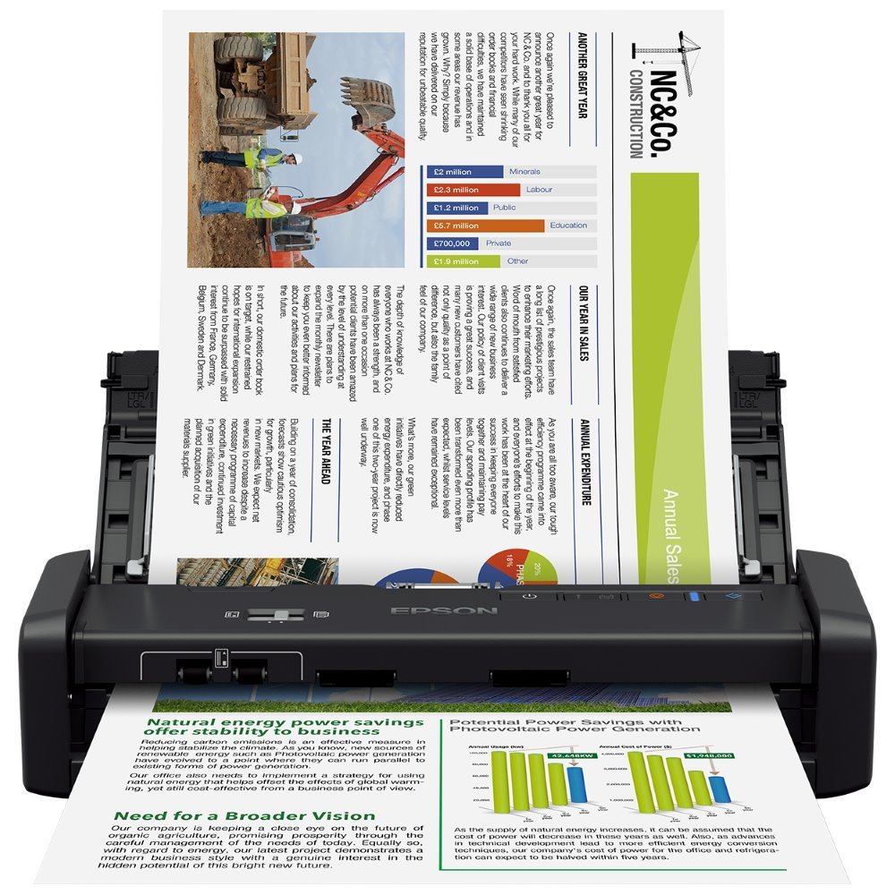 Přenosný skener s vestavěnou baterií a bezdrátovým připojením, díky kterému je snadné skenovat kdekoli. Zvládá jednostranné i oboustranné skenování, umí pracovat s vizitkami a listy papíru o váze 52 až 230 g/m2 a má vyhrazený slot pro snímání řidičských a občanských průkazů. Napájení vestavěné baterie je realizováno skrze USB port. Díky vysoké rychlosti skenování až 25 str./min., automatickému podavači s kapacitou 20 listů a rychlému zpracování dat se jedná o skvělou volbu pro snadnou práci s dokumenty.