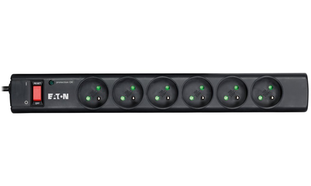 Praktická přepěťová ochrana pro počítače a elektroniku nabízí šest zásuvek.