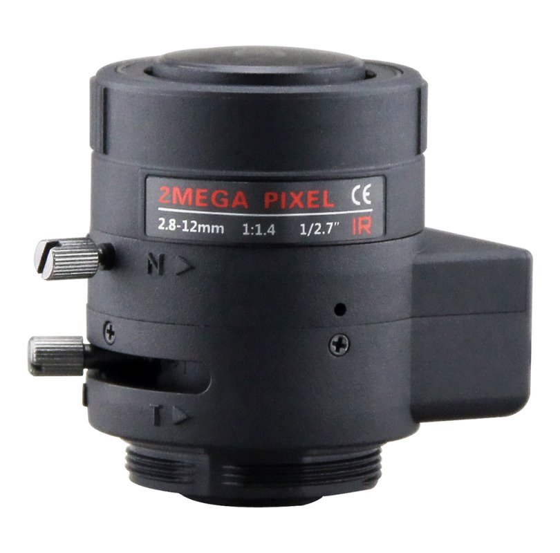 Objektiv s automatickou clonou typu DC Drive, ručním zaostřením, ručně nastavitelnou ohniskovou vzdáleností f = 2,8-12 mm, světelnost F = 1.4, montáž CS, obrazový formát 1/2,7", úhel záběru 106 až 32°, IR přizpůsobení, vhodný i pro 2,0 Mpix kamery.
