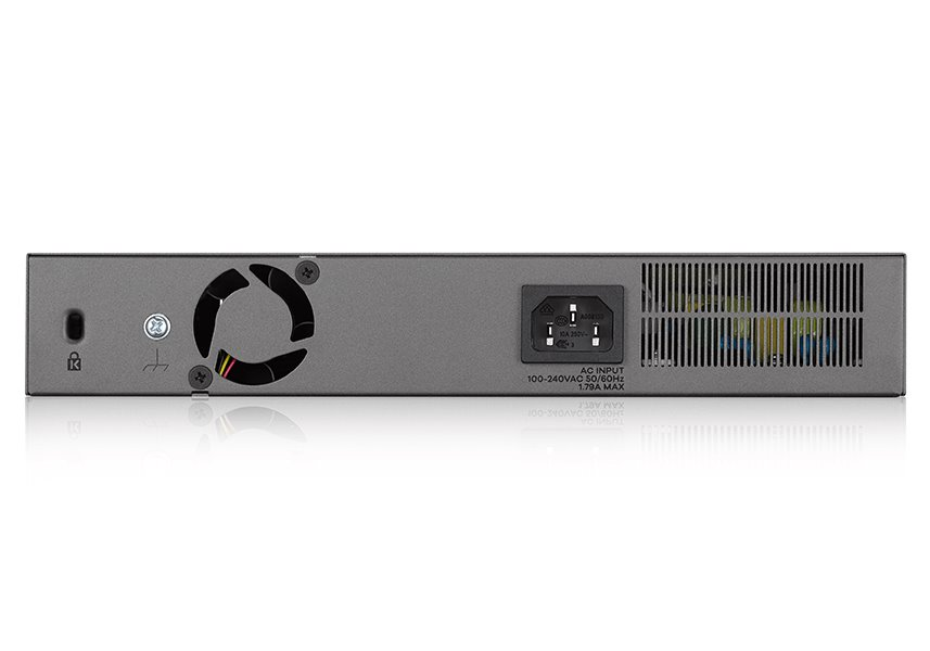 Přepínač, který po aktivaci rozšířeného dosahu umožňuje při použití stávajícího kabelu Cat5e instalovat IP kamery a napájená zařízení do vzdálenosti až 250 metrů. Tento model poskytuje 10 GbE RJ-45 portů s podporou PoE napájení až 130 W (802.3af/at) a 2 SFP sloty. Přepínací kapacita dosahuje až 24 Gbps a rychlost směrování až 17,8 Mpps. Buffer má kapacitu 525 KB a tabulka MAC adres 8K.