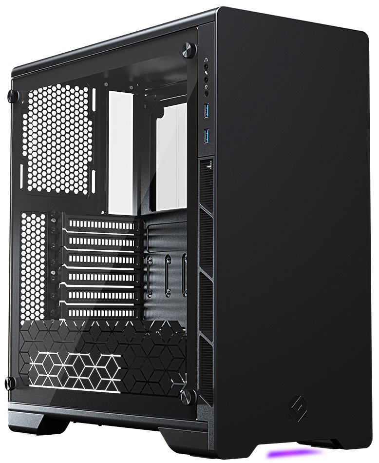 Skříň formátu Middle Tower nabízí dvě 2,5" pozice pro SSD disky a dvě 3,5" pozice pro pevné disky. Na bočním panelu se nachází dva USB 3.0 porty, sluchátkový výstup a audio vstup pro mikrofon. Na přední straně je vybavena dvěma 120 mm ventilátory a umožňuje pohodlné umístění až 280 mm dlouhého výměníku vodního chlazení. RGB podsvícení spolu s průhlednými bočnicemi z tvrzeného skla zajišťuje vytříbený design. Ve skříni je dostatek prostoru pro chladič CPU do výšky až 170 mm a grafickou kartu o délce až 320 mm. Skříň je dodávána bez zdroje. Součástí je také sada prachových filtrů.