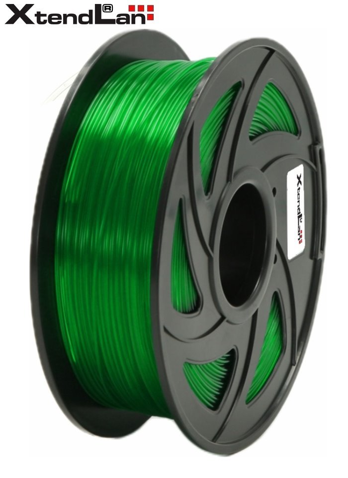 Plastové vlákno (filament) pro 3D tisk, v návinu na cívce. PET-G (PolyEtylénTereftalát Glykolem modifikovaný) je materiál velmi známý díky plastovým lahvím. PETG v sobě spojuje to nejlepší z vlastností ABS a PLA pro 3D tisk. Jde o pevný a houževnatý materiál. Odolností se materiál blíží polykarbonátům. Vyznačuje se velmi malým tepelným smrštěním a je vhodný pro tisk i velkých objektů. Má velkou odolnost proti rozpouštědlům a kyselinám. Odolává vysokým i nízkým teplotám. Při 3D tisku má velmi dobrou přilnavost k podložce. Vytištěný předmět lze tepelně leštit. Filament je chráněný vakuovým balením a v každém balení je přítomen vysoušecí sáček, který zabraňuje případnému působení vlhkosti na materiál. Dodáváno v kartónovém obalu s okénkem pro kontrolu barevnosti.