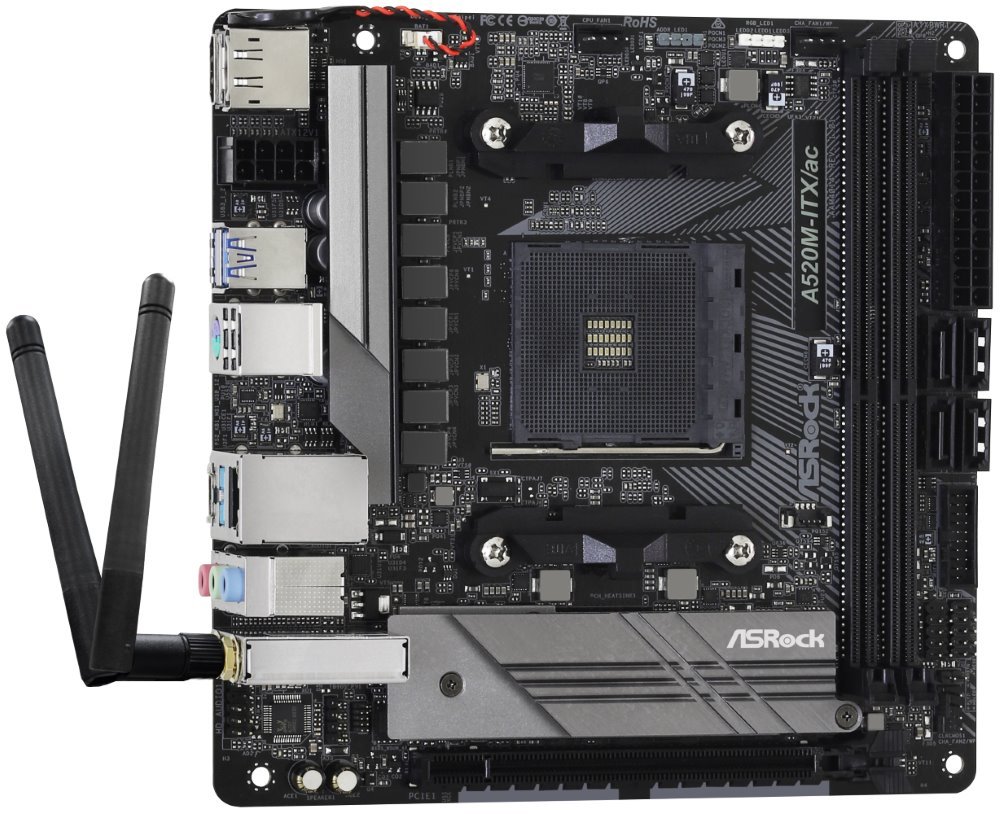 Základní deska ASRock A520M-ITX/ac kompaktního formátu je navržena pro procesory AMD Ryzen G-série 3000, 4000 a série 5000 a osadit ji lze až 64 GB RAM díky dvojici slotů pro operační paměť. Vyznačuje se konstrukcí z robustních komponent, které zajišťují přesné napájení CPU, a také vylepšeným výkonem při nižší teplotě, což ocení zejména hráči. Deska je osazena integrovanými RGB headery, které umožňují připojení kompatibilního LED zařízení, jako jsou pásky, ventilátory, chladiče apod., přičemž osvětlení lze také synchronizovat do stylového barevného celku.