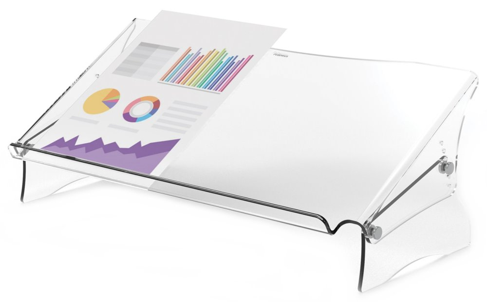 Praktický držák dokumentů se šesti nastavitelnými stupni výšky a sklonu pomáhá předcházet bolestem šíje a krční páteře. Držák je určen pro listy papíru formátu až A3 do celkové hmotnosti 6 kg.
