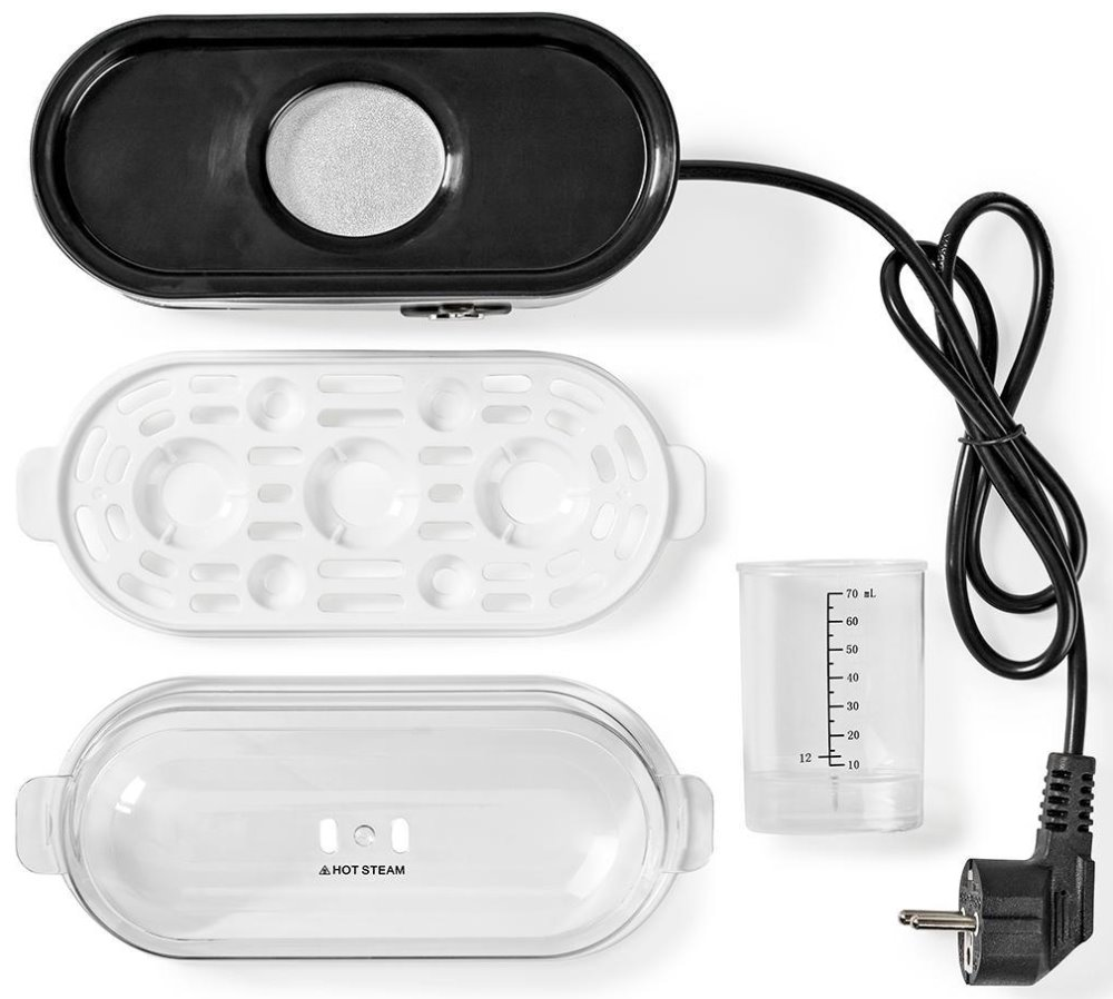 Kompaktní vařič na vejce nabízí různé režimy vaření podle hladiny vody. Umožňuje snadno a pohodlně uvařit až 3 vejce. Po uvaření zazní zvukový signál. Součástí balení je odměrka.