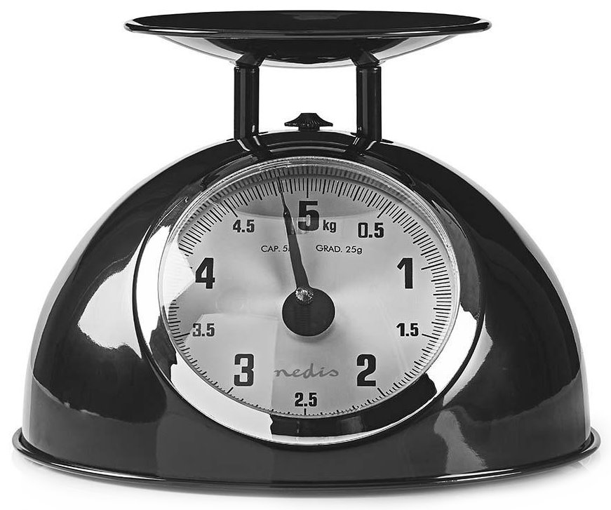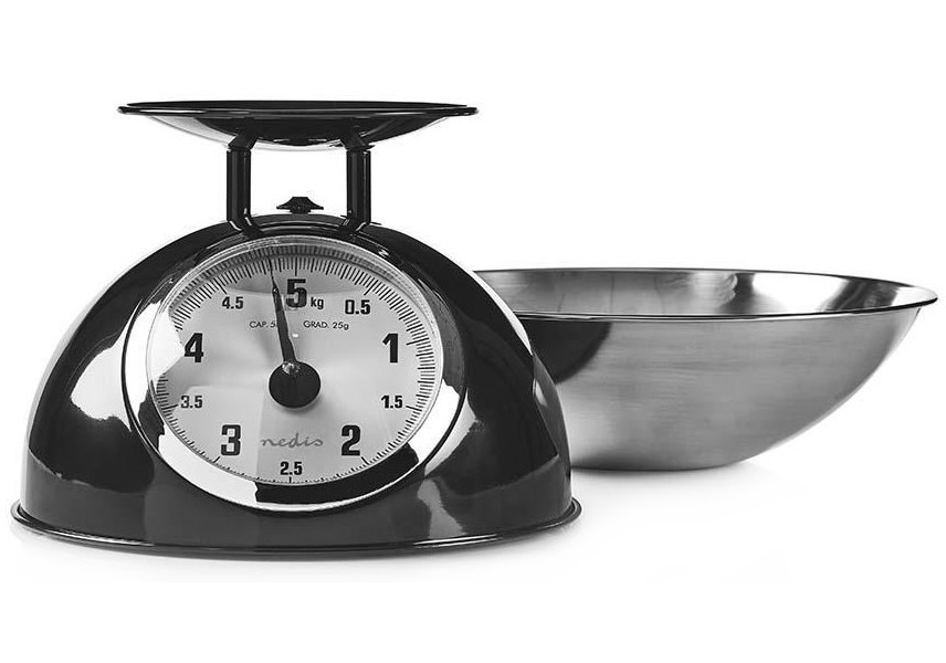 Analogová kuchyňská váha z nerezové oceli v jedinečném retro provedení. Je vybavena snadno čitelnou stupnicí po 25 g a funkcí Tare pro odečtení hmotnosti nádoby. Maximální zatížení činí 5 kg. Součástí balení je nerezová mísa.