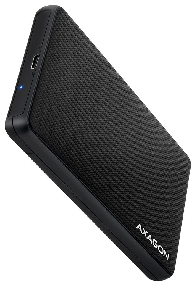 Bezšroubkový plastový box pro připojení 2,5" SATA disku k vašemu PC, notebooku, TV či jinému multimediálnímu zařízení pomocí konektoru USB typu C, přes který je zároveň i napájen. Pěnové výplně uvnitř boxu fixují a chrání vložený disk.