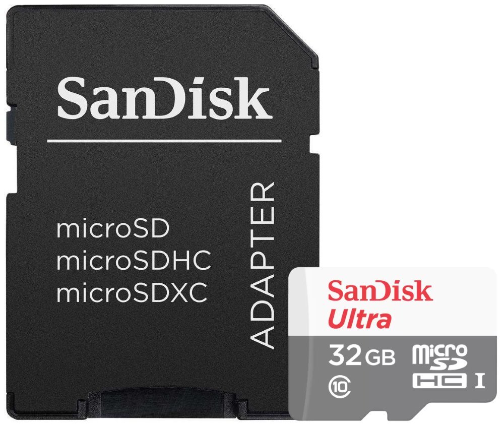 Paměťová karta formátu micro SDHC nabízí kapacitu 32 GB. Rychlost čtení je až 100 MB/s a rychlost zápisu až MB/s. Součástí balení je SD adaptér.