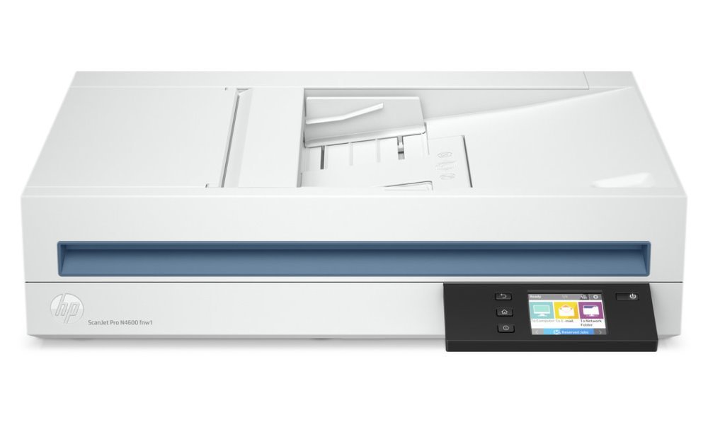 Skener formátu A4 s rozlišením až 1200 x 1200 obrazových bodů a optickým rozpoznáním znaků. Rychlost skenování činí až 40 stran za minutu. Pro více stránkové dokumenty oceníte automatický podavač dokumentů a možnost oboustranného skenování. Doporučená denní zátěž skenování činí 6000 stran. Připojení k počítači lze jednoduše realizovat pomocí USB, k síti drátově přes RJ-45 port nebo bezdrátově přes Wi-Fi. Uložení dat je také možné na USB disk, který připojíte přímo ke skeneru.