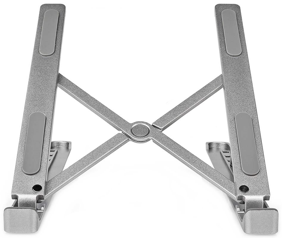 Přenosný podstavec pro notebooky a tablety s úhlopříčkou až 17" umožňuje nastavení úhlu sklonu a výšky v šesti stupních, čím pomáhá udržovat správné držení těla a redukovat tak napětí zad, krku a ramen. Křížový design zajišťuje spolu s protiskluzovým povrchem mimořádnou stabilitu. Otevřená konstrukce umožňuje dostatečné proudění vzduchu. Podstavec lze navíc jednoduše složit a využít jej i na cestách, aniž by zabíral zbytečné místo.