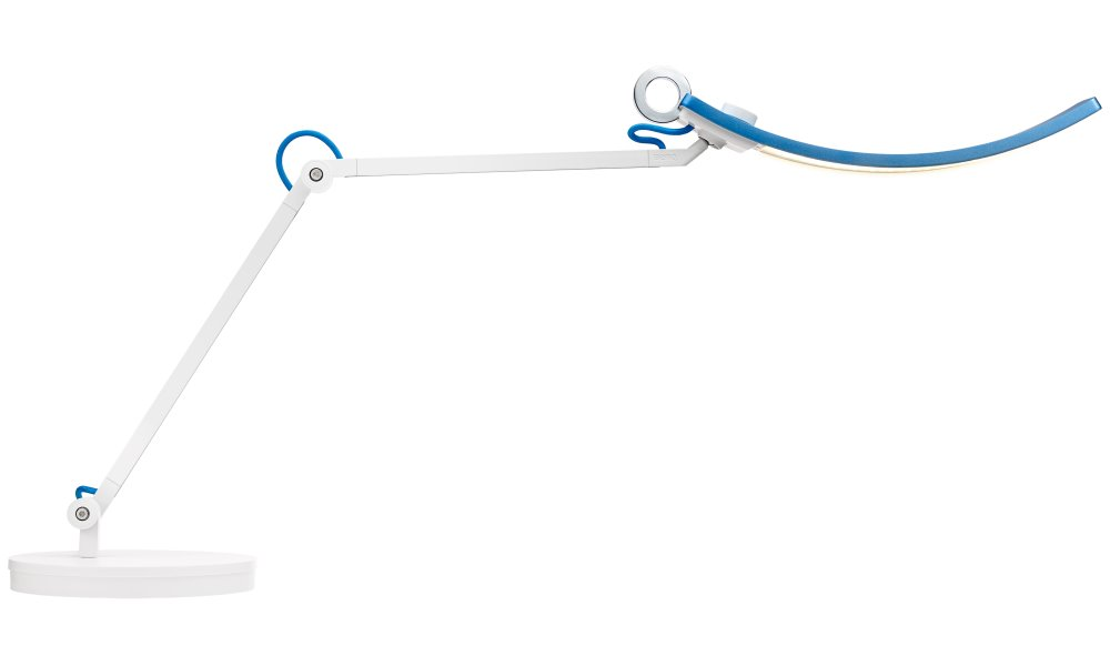 LED stolní lampička s nastavitelným ramenem a otočným kloubem umožňuje nasměrovat světlo přesně tam, kam potřebujete. Jedinečně zakřivený tvar lampy WiT je ztělesněním funkčnosti slučující se s estetikou. Ve srovnání s tradičními lampami dodává rovnoměrné světlo v rozsahu až 90 cm. Pouhým otočením knoflíku si můžete nastavit jas i barevnou teplotu od teplé bílé až po studenou. Inteligentní režim elektronického čtení, v kombinaci se zabudovaným snímačem okolního světla, redukuje kontrastní oslnění a odlesky na obrazovkách.