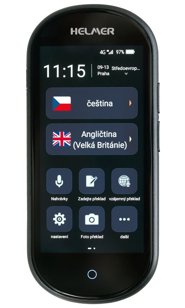 S hlasovým překladačem Helmer OTR 212 se dorozumíte cizím jazykem rychle, jednoduše a bez desítek hodin strávených v učebnicích. Tento model se vyznačuje obousměrným zvukovým překladem, který umožňuje komunikaci až ve 109 jazycích. Inovovaný model navíc dovoluje vložit 4G SIM kartu a překladač využít naprosto všude, kde je dostupný mobilní signál operátora, a to včetně mobilní datové sítě. Kromě toho umožňuje hlasový překladač Helmer OTR 212 bezdrátové připojení skrze síť Wi-Fi, takže převádět mluvený text nebo řeč do cizího jazyka můžete zcela neomezeně. Namluvený text je interpretován s dikcí a přízvukem rodilého mluvčího, aby nedošlo k nechtěnému komunikačnímu šumu. Totožný postup – tedy namluvení řeči nebo textu – použije i druhá osoba.
