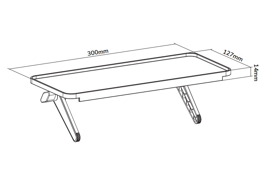 Rozměry: 300 × 127 × 14 mm (bez zajišťovací nožky)