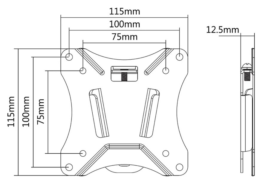 Rozměry VESA: 75 × 75, 100 × 100 mm
