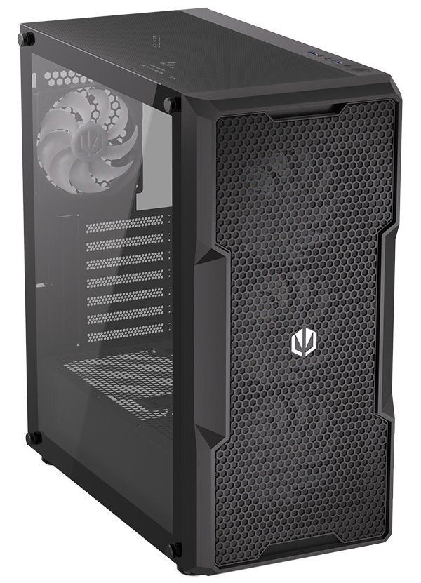 Skříň formátu Middle Tower s průhlednou bočnicí z tvrzeného skla nabízí dvě 2,5" pozice pro SSD disky a dvě 3,5" pozice pro pevné disky. Na horní části se nachází dva USB 3.0 porty, sluchátkový výstup a audio vstup pro mikrofon. Vybavena je čtyřmi 120 mm ventilátory s ARGB podsvícením, které spolu s perforovaným čelním panelem zajišťují dostatečné proudění vzduchu. Důmyslné řešení umožňuje pohodlné umístění až 360 mm dlouhého výměníku vodního chlazení na přední straně. Ve skříni je dostatek prostoru pro chladič CPU do výšky až 162 mm a grafickou kartu o délce až 370 mm. Dodávána je bez zdroje. Součástí je také interní ARGB ovladač a sada prachových filtrů.