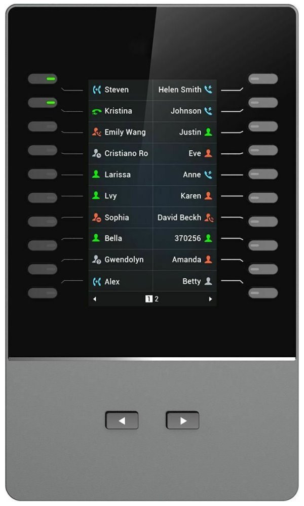Rozšiřující modul přidává funkčnost, variabilitu a flexibilitu vybraným IP telefonům Grandstream. Jeho součástí je barevný 4,3" LCD displej s rozlišením 272 x 480 bodů, 20 tlačítek s dvoubarevnými LED a 2 navigační klávesy. Podporuje širokou škálu pokročilých funkcí včetně BLF, zaparkování a převzetí hovoru, rychlého vytáčení, presence, interkomu, přesměrovaní či přepojení hlasových konferencí a mnoho dalšího. S tímto modulem lze rozšířit adresář o 40 kontaktů a lze takto využít až 4 moduly současně. Součástí balení je USB kabel, stojánek, držák pro upevnění k telefonu a napájecí adaptér.