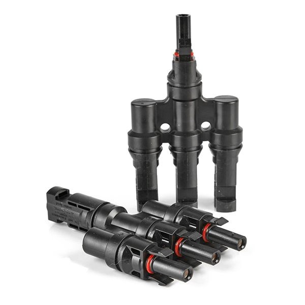Rozbočovací solární T konektor typu MC4 určený pro paralelní propojení solárních panelů. Je vyroben z vysoce odolného plastu a je opatřen gumovými těsnícími vložkami. Vhodný i pro venkovní aplikace.