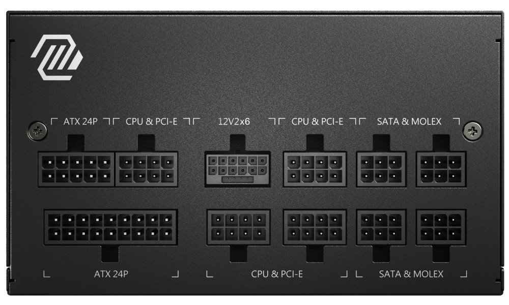 Napájecí konektory: 1× ATX 20 + 4pin, 2× EPS 4 + 4pin, 3× PCIe 6 + 2pin, 1× PCIe 5.0/5.1 (12 + 4pin), 8× SATA, 4× Molex, 1× Floppy (FDD)