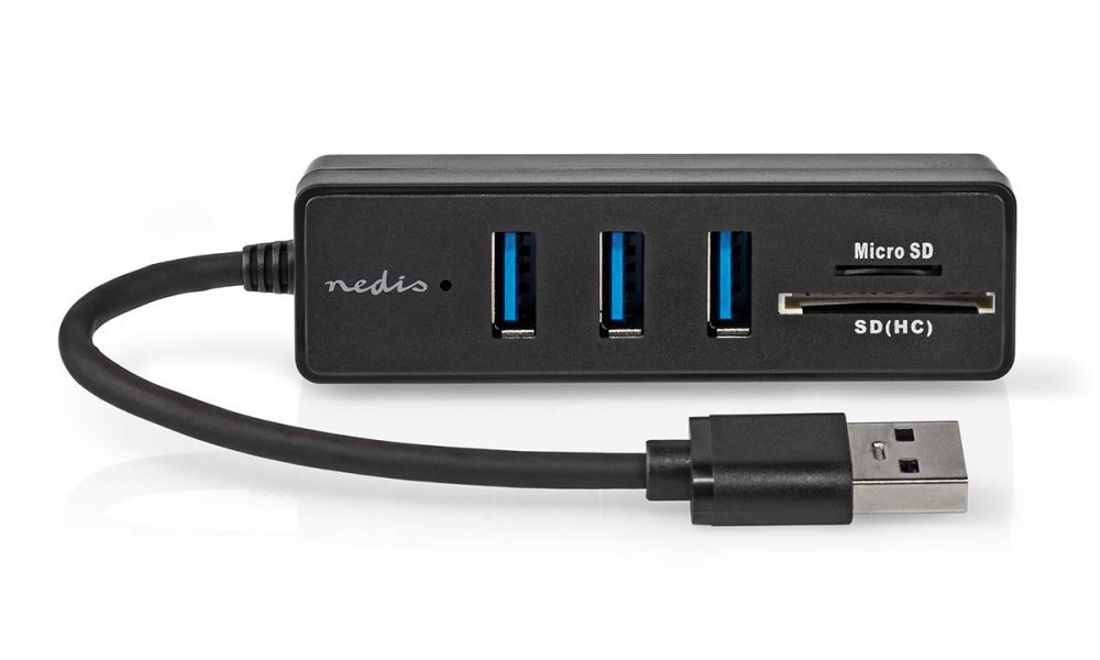USB hub pro notebooky a počítače s rozhraním USB 3.0 nabízí rozšíření o tři USB 3.0 porty, čtečku SD a microSD karet.