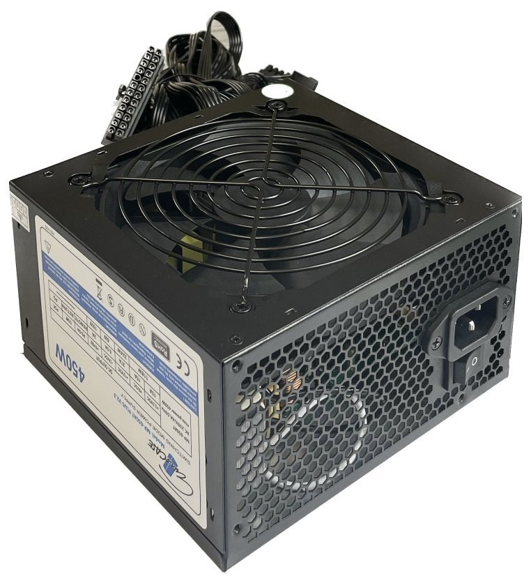 Napájecí zdroj o výkonu 450 W je osazen tichým 120 mm velkým ventilátorem a pasivním PFC. Otáčky ventilátoru jsou řízeny termoregulací. Účinnost zdroje splňuje certifikaci 80+.