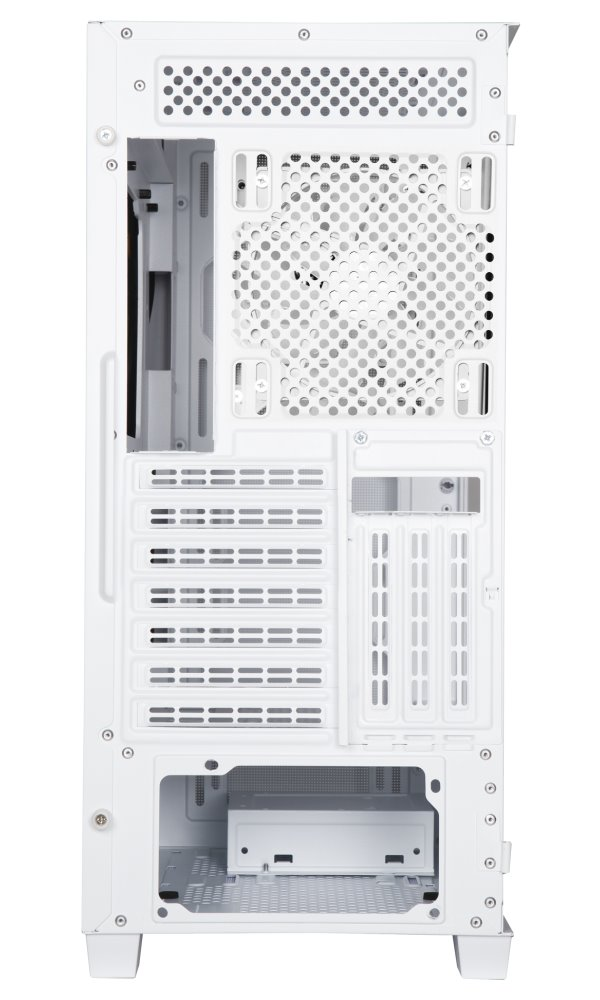 Kvalitní počítačová skříň formátu Middle Tower nabízí čtyři 2,5" a dvě 3,5" pozice pro SSD a pevné disky. Skříň je vybavena průhlednou bočnicí a poloprůhledným čelem s perforací pro optimální proudění vzduchu. Předinstalovány jsou čtyři 120mm ventilátory s FRGB podsvícením. Na horním panelu se nachází dva porty USB 3.0, jeden port USB 2.0, sluchátkový výstup a audio vstup pro mikrofon. Ve skříni je dostatek prostoru pro chladič CPU do výšky až 170 mm a grafickou kartu o délce až 355 mm. Důmyslné řešení umožňuje pohodlné umístění až 360 mm dlouhého výměníku vodního chlazení na přední straně. Potěší také přítomnost prachových filtrů. Skříň je dodávána bez zdroje.