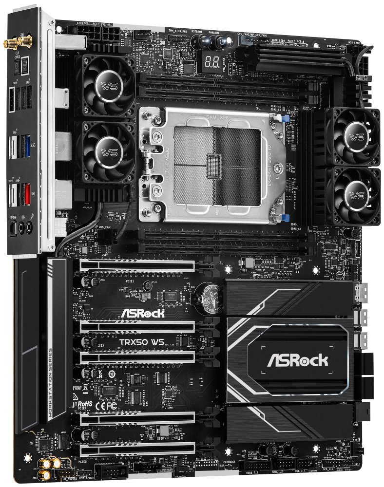 Základní deska ASRock TRX50 WS pro stavbu všestranných pracovních stanic. Je navržena pro vysoký výkon procesorů AMD Ryzen Threadripper 7000 a Threadripper PRO 7000 s možnostmi správy jejich vysokorychlostních procesů. Komponenty základní desky napájí robustní systém s technologií SPS (Smart Power Stage), který plynule dodává proud a optimalizuje celkový chod. Kompozitní VRM chladič s aktivními ventilátory a tepelnou trubicí zajišťuje maximální odvod tepla.