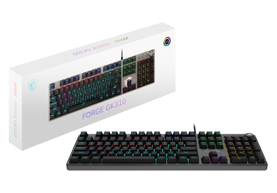 Mechanická klávesnice MSI FORGE GK310 v sobě spojuje výkon a estetiku, díky které se skvěle uplatní v herním koutku i na pracovním stole. Je totiž ideální nejenom na gaming, ale také kreativní činnosti a náročnou práci. Klávesy jsou osazeny mechanickými lineárními spínači MSI Red, které podporují přesnost a plynulost každého stisku.