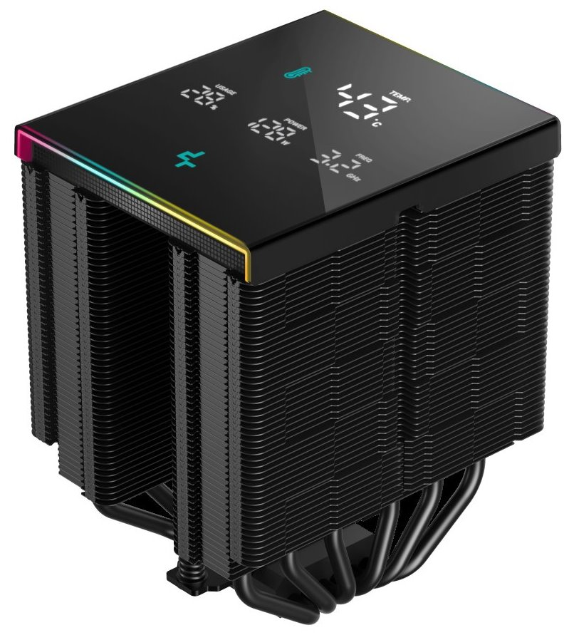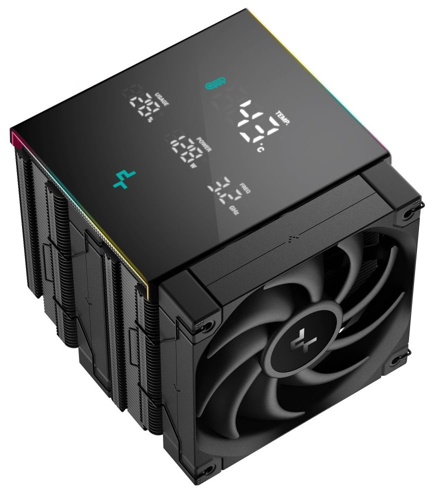 Chladič DEEPCOOL AK620 Digital Pro je navržen pro procesory AMD a Intel. Jednou z hlavních inovací je přítomnost digitálního displeje, který v reálném čase zobrazuje teplotu a vytížení procesoru. Displej ovládáte pomocí jednoduché aplikace. Design chladiče DEEPCOOL AK620 Digital Pro využívá kvalitní materiály, od vnější konstrukce až po tepelné trubice.
