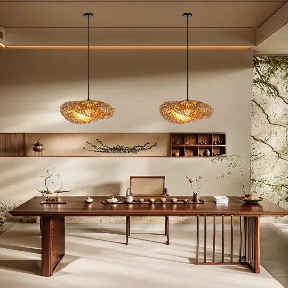 Svítidlo bez světelného zdroje, stropní, závěsné, patice E27, max. 40W, průměr 60cm, výškově stavitelné, bambus