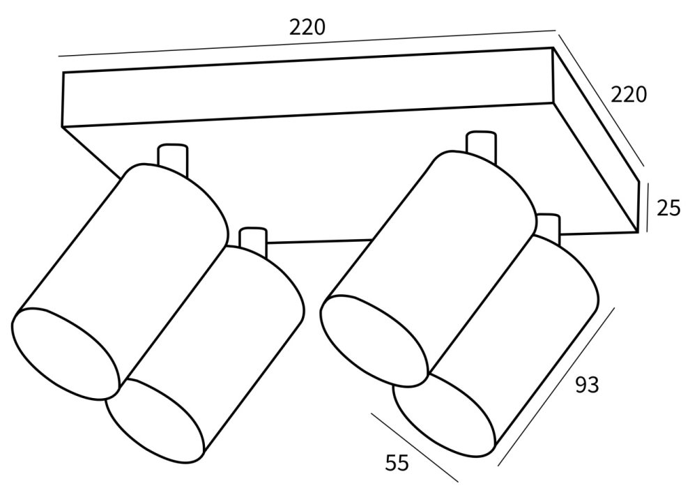 Rozměry základny: 220 × 220 × 25 mm