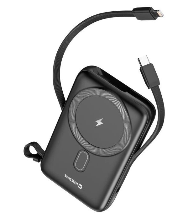 Powerbanka s kapacitou 10 000 mAh, se kterou již nebudete muset řešit žádné kabely. Nabízí dva integrované kabely s konektory USB-C a Lightning, a navíc i bezdrátové dobíjení pomocí technologie Qi či MagSafe. Powerbanka disponuje menšími rozměry (113 × 72 × 22 mm), tudíž nezabere velké množství místa a s váhou 225 g ji můžete nosit v tašce nebo kabelce.