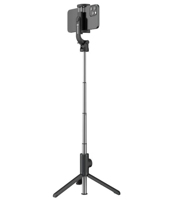 Selfie tyč SWISSTEN TRIPOD PRO, která se uplatní také jako stativ. Je vhodná pro zachycení každého okamžiku jak objektivem smartphonu, tak akční kamery, díky čemuž je ideální pro všechny, kteří se věnují mobilní fotografii nebo tvorbě videí, živého streamování apod.