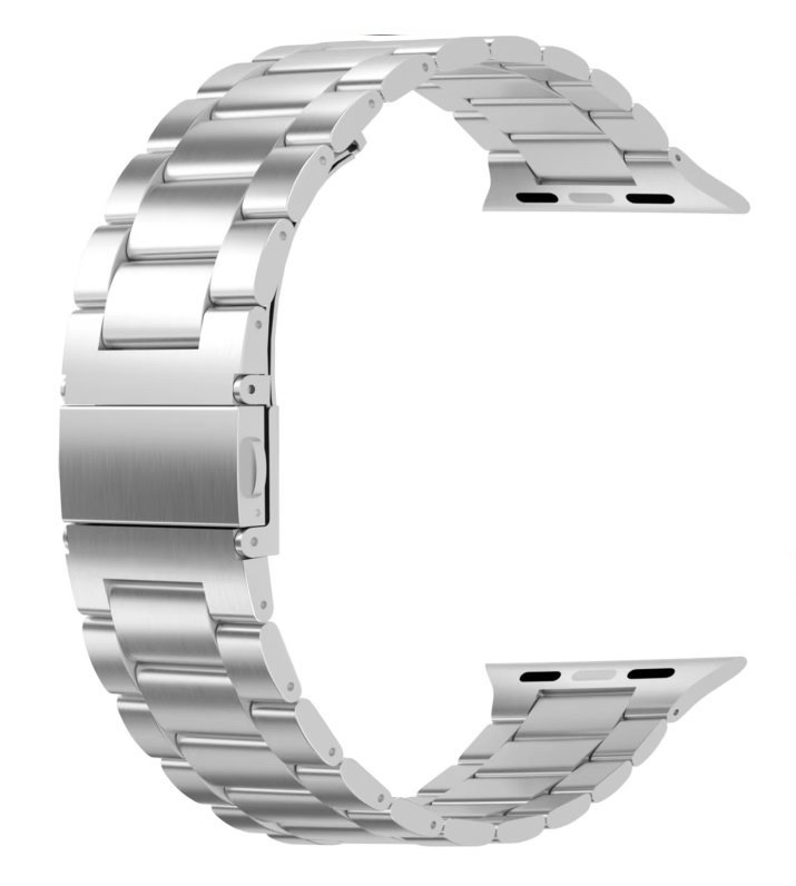 Řemínek z nerezové oceli pro chytré hodinky Apple Watch. Je precizně vyrobený, robustní a chytrým hodinkám dává vzhled klasických hodinek. Kvalitní kovová spona zajišťuje jednoduché nandávání a sundávání.