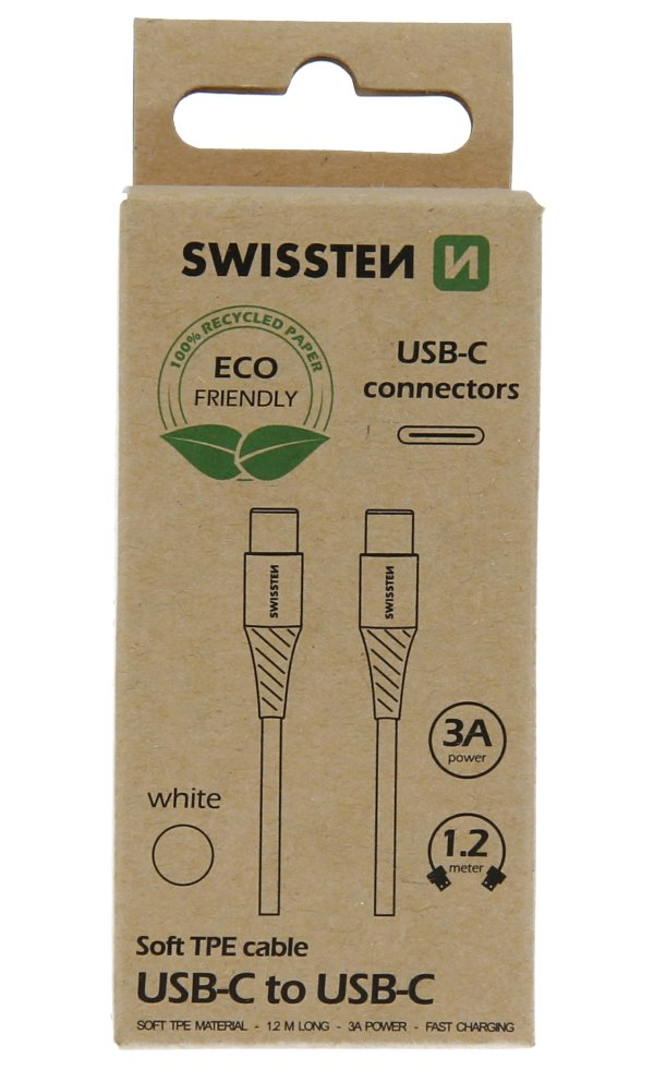 Nabíjecí a datový USB-C kabel vyrobený z termoplastického polyuretanu (TPU) se vyznačuje vysokou pružností a ohebností, ale zároveň pevností a odolností. Kromě přenosu dat rychlostí 480 Mb/s podporuje také nabíjení proudem až 3 A. Konektory jsou pokryty eloxovaným hliníkem, který na vzduchu neoxiduje a zvládne i hrubší zacházení. Dodáván je v ekologickém balení z recyklovaného papíru.