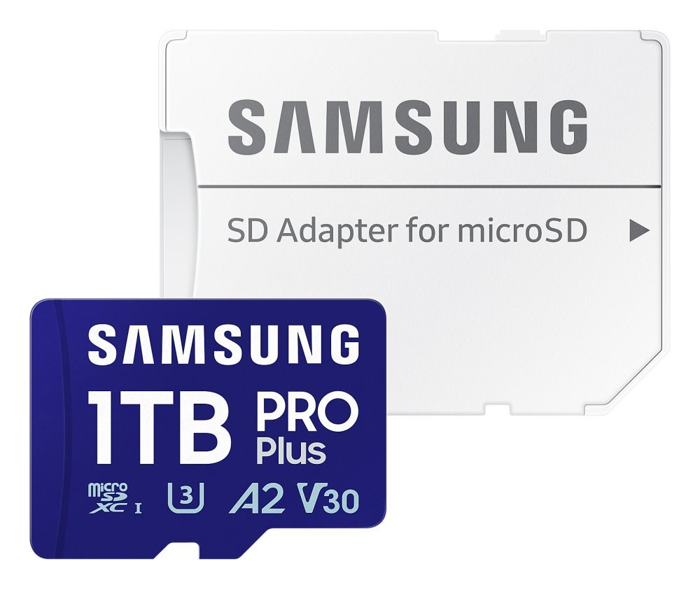Paměťová karta Samsung PRO Plus MicroSXCD s vysokou rychlostí zápisu dat a jejich zpracování je ideální pro nahrávání videa, pořizování snímků a ukládání dalšího obsahu ve 4K kvalitě. Uplatní se jako rozšiřující úložiště pro tablet, smartphone, nebo dokonce dron. Podporuje nejenom vysokou rychlost, ale také kapacitu, která je v tomto případě 1 TB. Fotografujte a natáčejte v rychlém sledu.