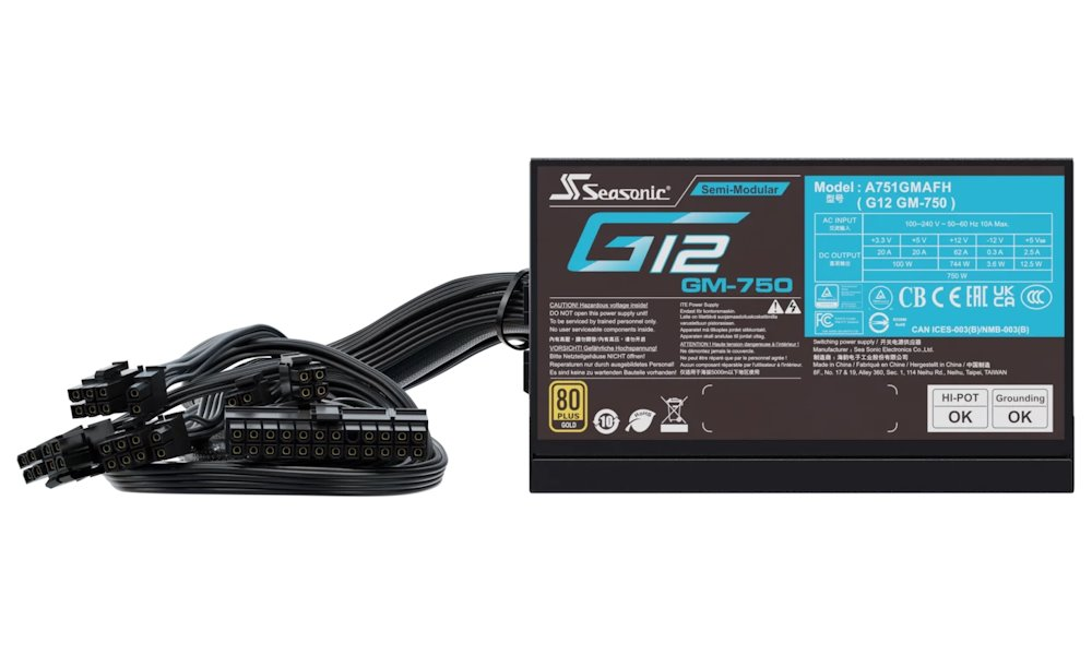 Napájecí zdroj o výkonu 750 W je osazen tichým 120 mm velkým ventilátorem. Zdroj splňuje certifikaci 80PLUS Gold a má částečně odpojitelné kabely.