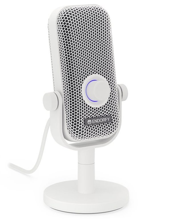 Kvalitní mikrofon s kardioidní charakteristikou a stojánkem je ideální pro streamování, natáčení vlogů, podcastů či hlasovou komunikaci. Díky své kompaktní velikosti zabírá velmi málo místa, takže se pohodlně vejde i na malé stoly. Kromě toho má dobrou povrchovou přilnavost a je kompatibilní se všemi mikrofonními rameny Endorfy. Vybaven je RGB podsvícením, dotykovým tlačítkem pro ztlumení mikrofonu a konektorem 3,5 mm jack pro připojení sluchátek. Kromě počítače můžete mikrofon připojit také k herní konzoli PS4 a PS5, nebo ke smartphonu s rozhraním USB-C a podporou OTG. Součástí balení je pěnový pop-up filtr, 2m připojovací USB-C kabel a redukce z USB-C na USB-A.