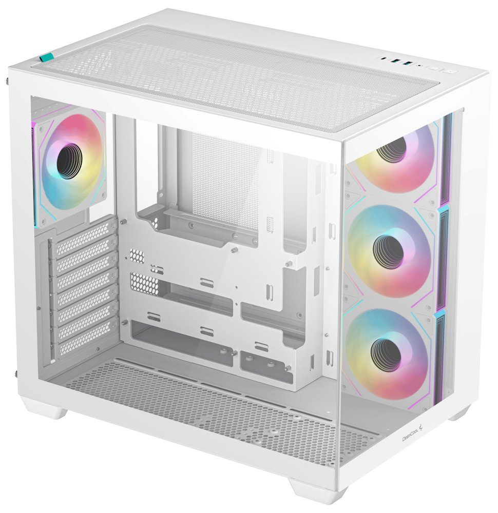 Vystavte svůj počítač na odiv s PC skříní DEEPCOOL CG530 4F. Kromě prostoru pro uložení PC komponent tento model do jisté míry slouží i jako výstavní skříň celého systému. Disponuje průhlednou bočnicí a průhledným předním panelem, takže poskytuje impozantní panoramatický pohled do nitra počítače. PC skříň DEEPCOOL CG530 4F v provedení Middle Tower poskytuje dostatek prostoru na vše, co potřebujete pro složení výkonného, multimediálního nebo profi počítače. Dvoukomorové uspořádání podporuje širokou kompatibilitu a zlepšené proudění vzduchu.