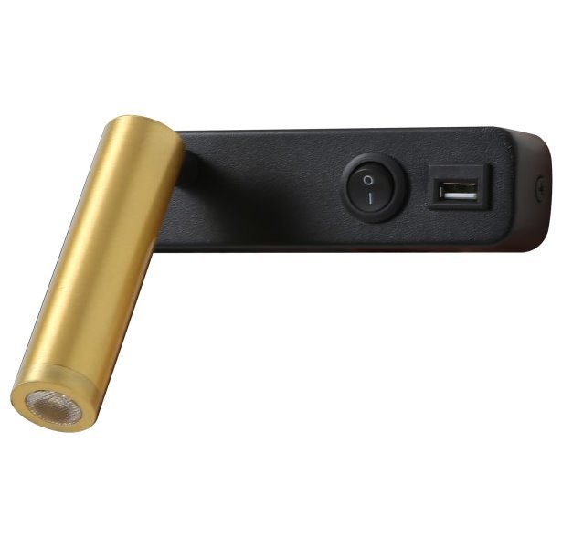 Nástěnné bodové LED svítidlo s výkonem 3 W. Disponuje válcovitou hlavou, kterou lze otáčet v rozsahu 330° a vyklápět o 90°, což umožňuje přesné zacílení tam, kde je potřeba. Mechanický kulatý vypínač umístěný na těle svítidla umožňuje jednoduché a pohodlné ovládání. Předností je také integrovaný USB port pro snadné nabíjení elektronických zařízení, což z něj činí ideální doplněk k posteli nebo pracovnímu stolu.