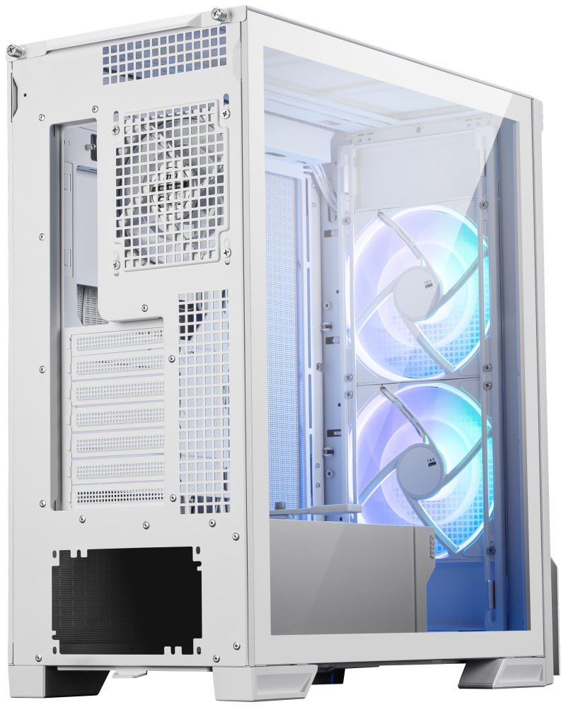 Kvalitní počítačová skříň formátu Middle Tower nabízí 4× 2,5", 1× 3,5" a 1× 2,5"/3,5" volné pozice pro uložení pevných nebo SSD disků. Skříň je vybavena průhlednou bočnicí a předním panelem. Předinstalovány jsou dva 160mm ventilátory s adresovatelným RGB podsvícením a jeden 120mm ventilátor bez podsvícení. Rychlou změnu podsvícení umožňuje tlačítko na horním panelu. Zde se také nachází dva porty USB 3.0, jeden port USB-C a kombinovaný port sluchátek a mikrofonu. Ve skříni je dostatek prostoru pro chladič CPU do výšky až 165 mm a grafickou kartu o délce až 400 mm. Důmyslné řešení umožňuje pohodlné umístění až 360 mm dlouhého výměníku vodního chlazení na přední, horní i boční straně. Potěší také přítomnost odnímatelných prachových filtrů. Skříň je dodávána bez zdroje.