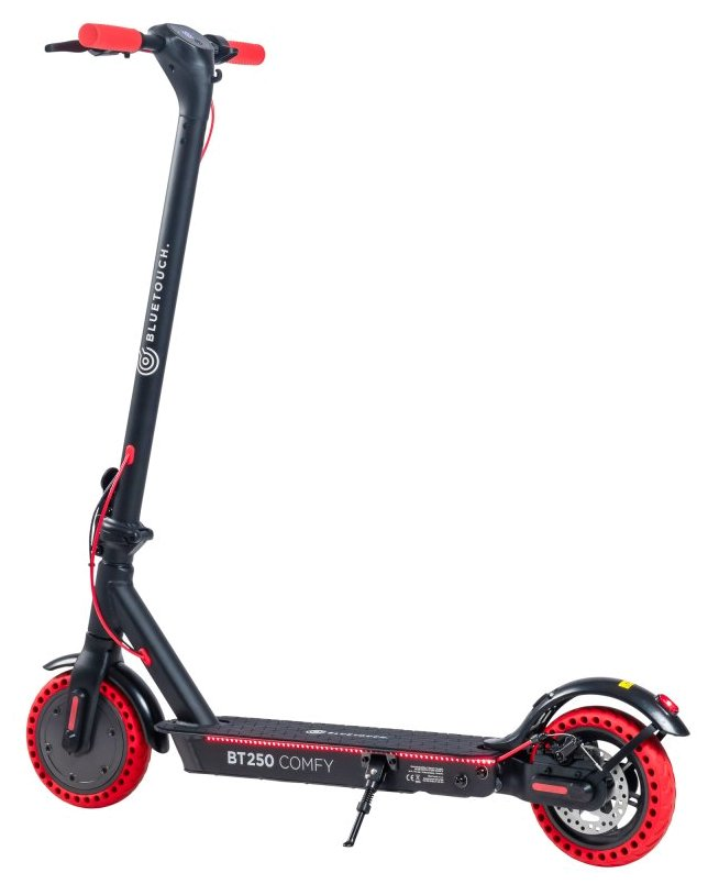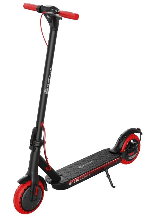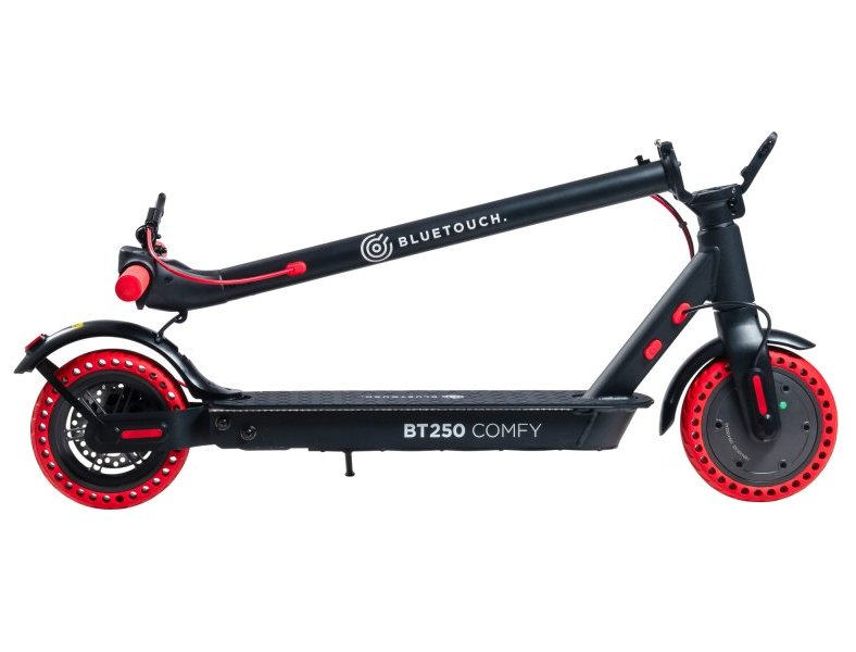 Koloběžka BLUETOUCH BT250 COMFY je navržena s důrazem na praktičnost v městském prostředí. Díky skládacímu mechanismu ji snadno přenesete do výtahu, uložíte pod stůl v kanceláři nebo do kufru auta. Elegantní černo-červený design zaujme na první pohled.
