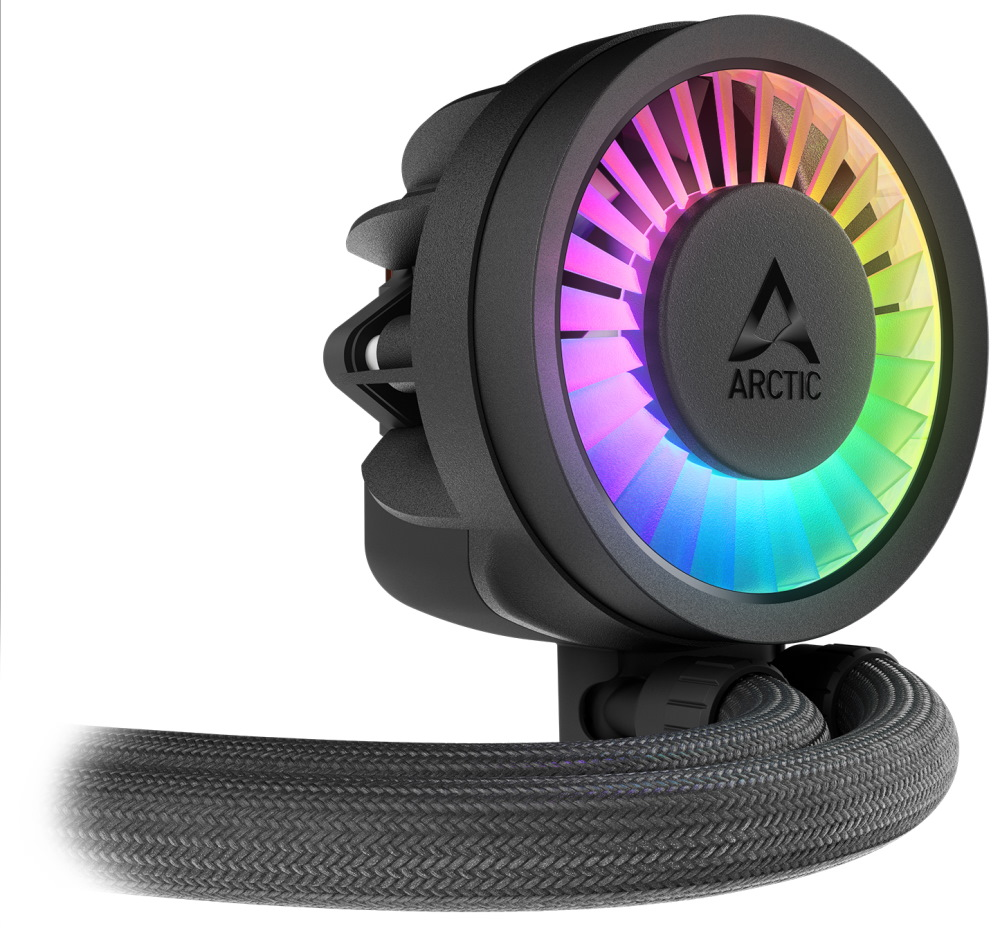 VRM ventilátor se aktivně postará o chlazení a podporuje stabilní výkon i v rámci přetaktování. Konstrukční technologie Intel Contact Frame rovnoměrně rozkládá tlak, a tak podporuje delší životnost procesoru. Trojice 140mm ventilátorů ARCTIC P14 Pro A-RGB pracuje tiše při nízkých otáčkách a v případě potřeby to roztočí do vysokých obrátek. Radiátor dokáže pojmout dostatek kapaliny na to, aby s přehledem zvládal vysokou teplotní zátěž. Připojen je prémiovými hadicemi, které jsou odolné a vydrží opravdu dlouho.
