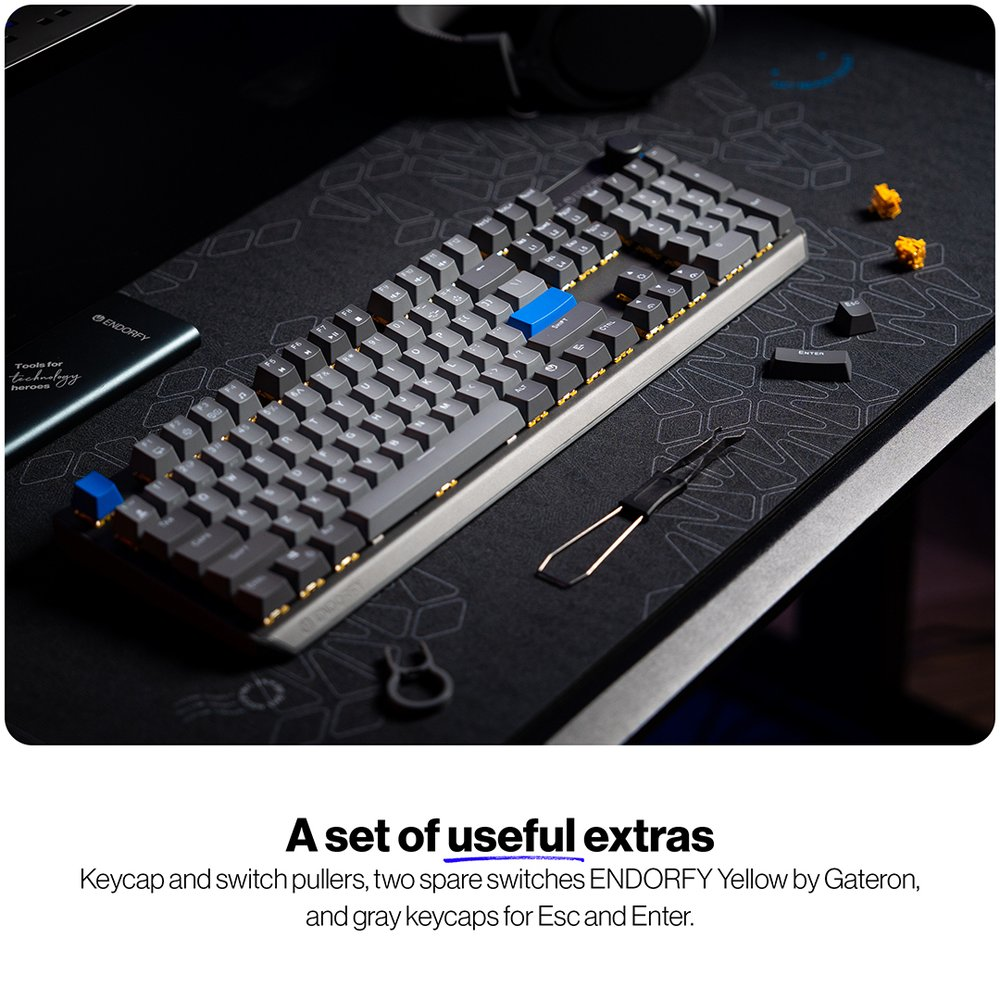 Prémiová konstrukce s hliníkovou horní deskou zvládne každou herní session bez ohledu na intenzitu. Je pevná, stabilní a nezlomná v jakékoli akci. Provedení s 3 vrstvami akustické pěny eliminuje vibrace a dutý zvuk. Díky tomu je každý stisk příjemný a klávesnice nezní jako nějaké staré železo. Endorfy Thock V2 je vybavena spínači Endorfy Yellow by Gateron, které jsou speciálně navrženy pro plynulost a přesnost každého stisku.