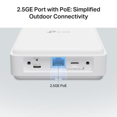 Porty: 1× 2,5 Gbps PoE/LAN port, 1× Nano SIM slot, 1× Type-C debug port