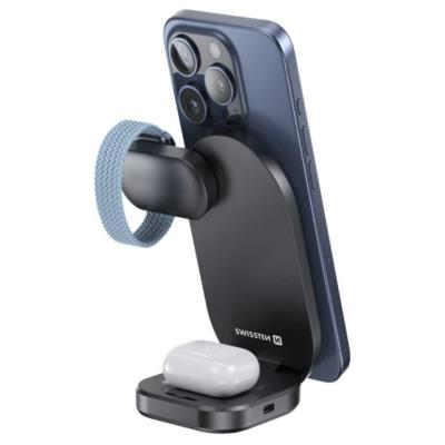 Nabíječka SWISSTEN MagBase kombinuje pokročilý standard Qi2 s praktickou skládací konstrukcí. Díky magnetickému vystředění kompatibilnímu s MagSafe zajišťuje perfektní zarovnání a stabilní nabíjení výkonem až 15 W pro iPhone. Kompaktní tělo v matně černém provedení s tmavě šedými detaily působí prémiově na pracovním stole i na cestách.